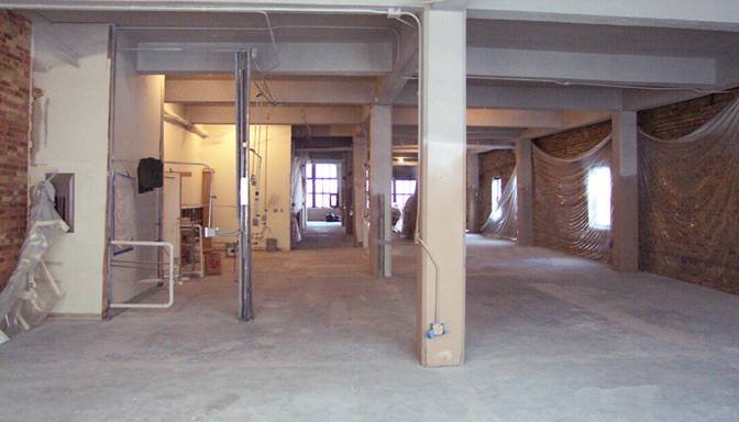 Gutted warehouse space before construction