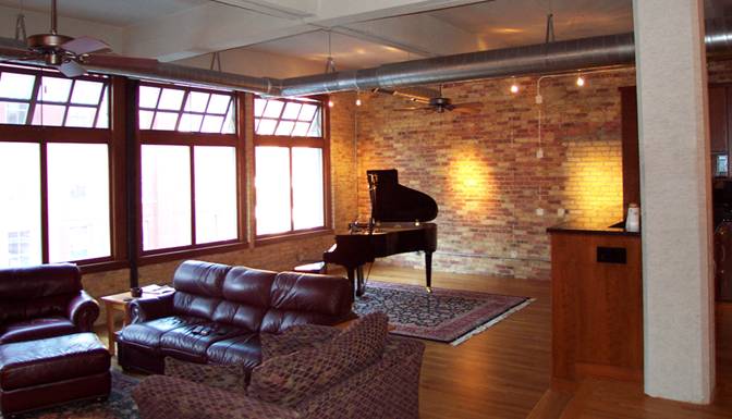 Dining/Living Room with re-crafted historic wood awning windows
